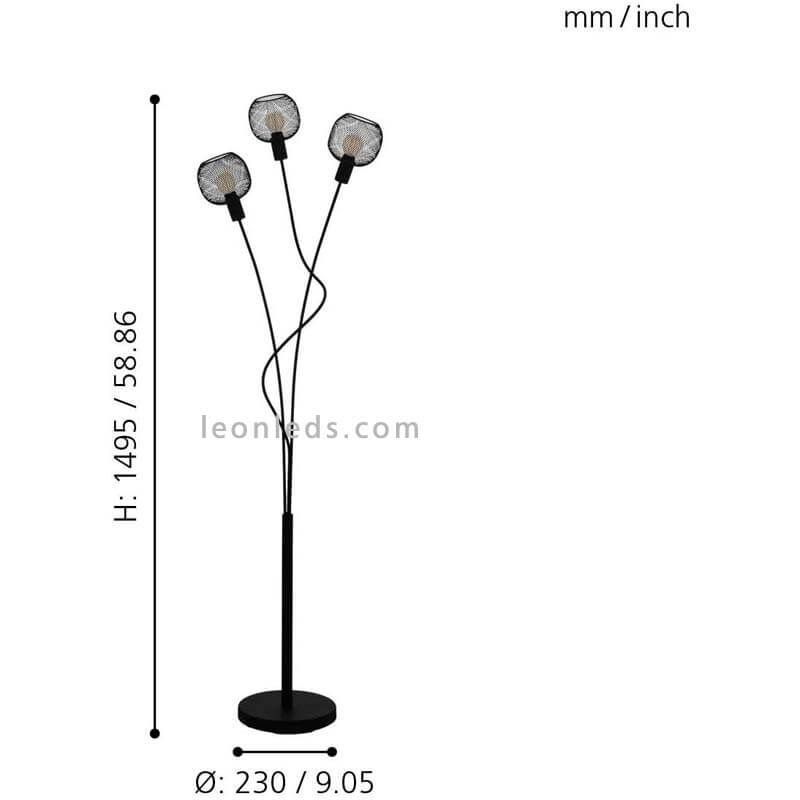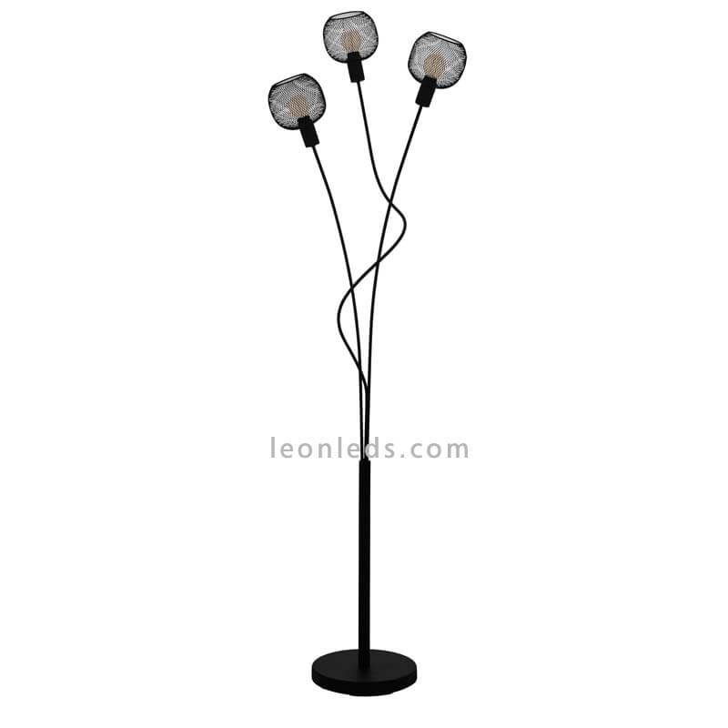 Lâmpada de assoalho com 3 telas de aço preto na forma de grade da coleção Wrington 1 Iluminação do Eglo. É uma lâmpada de pé vintage e industrial perfeito para qualquer quarto que requer iluminação e decoração com toques industriais. Na sua tela esférica predomina a cor preta do aço metálico. Necessidades 3 lâmpadas com concha E14 (não incluído). Recomendamos o uso de lâmpadas de filamento LED do tipo Globo para melhorar seu estilo retro, pois elas serão ligeiramente visíveis por trás de suas telas de grade. PEscolha de forma confiável um tom quente como o 3.000k que irá melhorar que procurou vintage ou efeito retro. A potência recomendada é de 10 a 17W dependendo das dimensões da estadia que precisamos para iluminar.