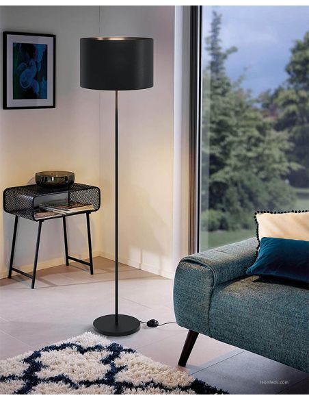 Candeeiro de pé com abajur têxtil e acabamento total Black da marca Eglo, este Candeeiro de Pé permite instalar 1 lâmpada LED com rosca E27 (não incluída), a sua altura é de 151,5 cm com um diâmetro de 38 cm. Inclui um interruptor no próprio cabo que pode ser ativado com o pé.