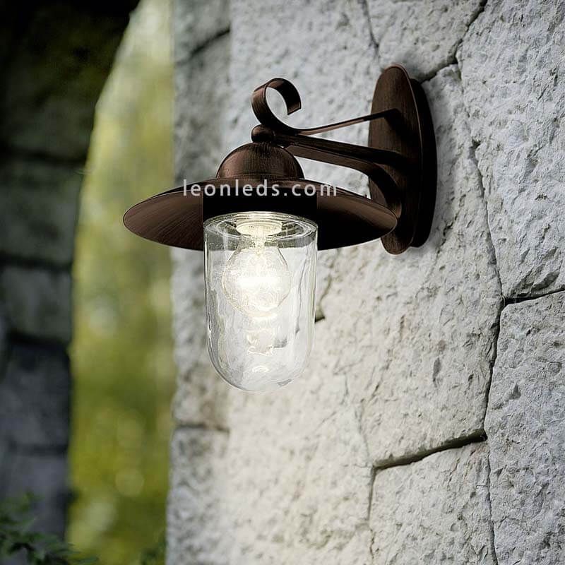 Aparelho de parede E27 milton velho marrom rústico Iluminação do Eglo é a melhor escolha para você se você está procurando um aplicativo com design rústico e tela de vidro. seu corpo é feito de aço galvanizado e com um acabamento marrom velho que lhe dá aquele olhar de madeira que se encaixa perfeitamente na fachada de casas rústicas ou rurais.