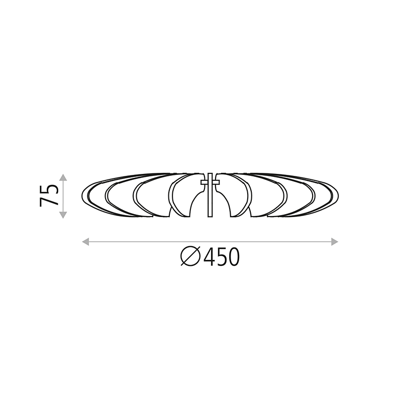 Este aplique de parede tem um diâmetro de 45 centímetros e uma espessura de 7,5 centímetros.