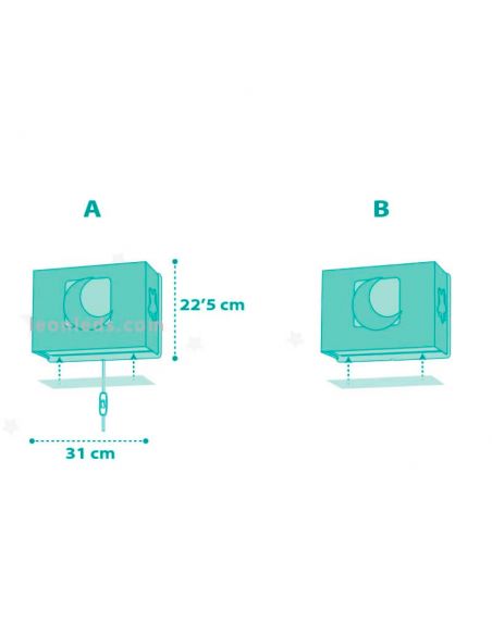 A tela é retangular e tem um difusor de luz no fundo dele, o contorno da decoração brilha na escuridão, isso ajudará a conciliação do sonho de nossos pequeninos. No interior uma concha é acomodada para instalar 1 lâmpadas LED com rosca E27 (não incluído).