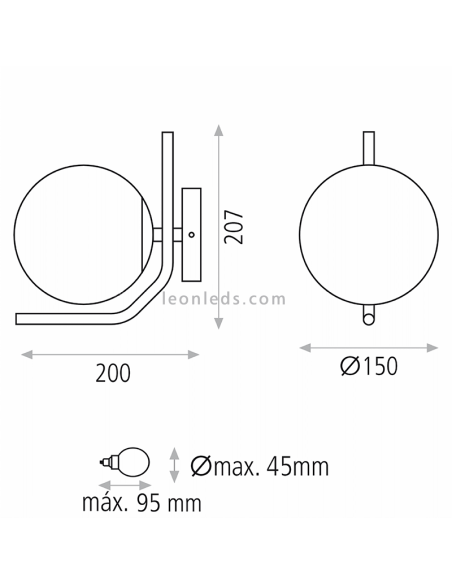 O candeeiro de parede modelo Maui é o que precisa para dar o toque final à decoração da sua casa. É feito de vidro opala/metal e tem dimensões de 340mm x 230mm, além de peso líquido de 0,96kg.