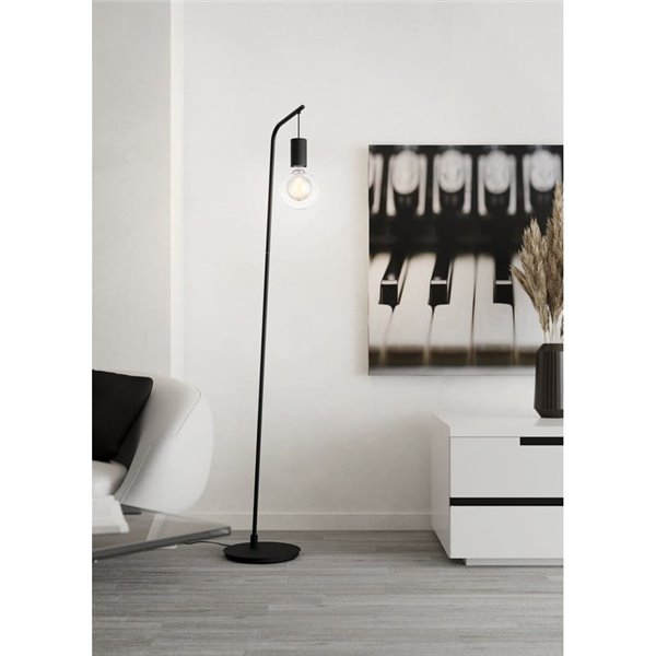 O candeeiro de pé CRANLEY da EGLO, com base em metal preto e casquilho exposto, é perfeito para espaços modernos e minimalistas. Compatível com lâmpadas E27 (não incluídas).