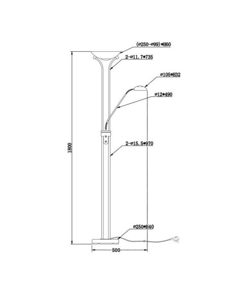O Candeeiro de Pé LED SPOCK combina funcionalidade e design moderno com duas luzes independentes, um braço de leitura ajustável e um difusor principal. Regulável, com luz quente de 3000K e consumo eficiente de 5W e 19W.