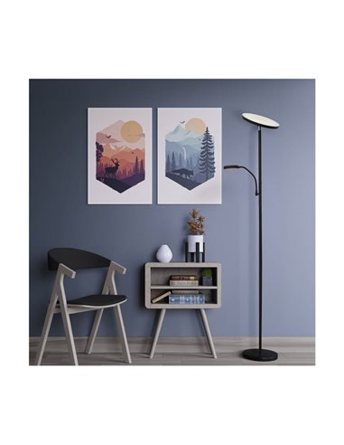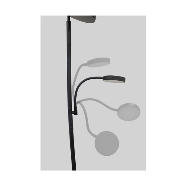 O Candeeiro de pé LED Denzel da CristalRecord é uma solução de iluminação que combina funcionalidade e estilo. A sua estrutura em metal preto e o braço de leitura adicional tornam-no ideal para fornecer luz ambiente e focada em qualquer divisão.