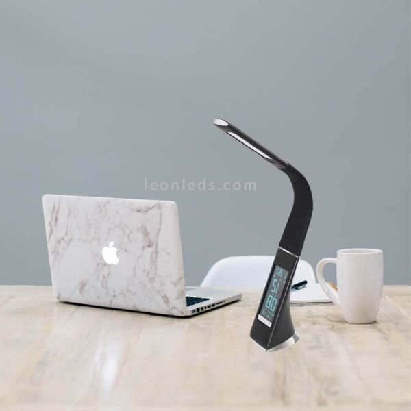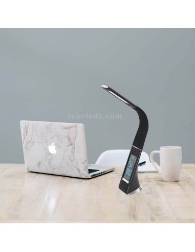 No fundo da lâmpada, inclui um envoltório de couro preto que protege a exposição digital e fornecerá elegância extra para a estética deste cognoli flexo que se tornará o objeto principal de sua casa ou escritório.