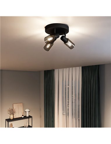 - Design elegante : Spots com abajur de vidro preto fumê criam um ambiente moderno e sofisticado, perfeito para qualquer estilo de decoração.