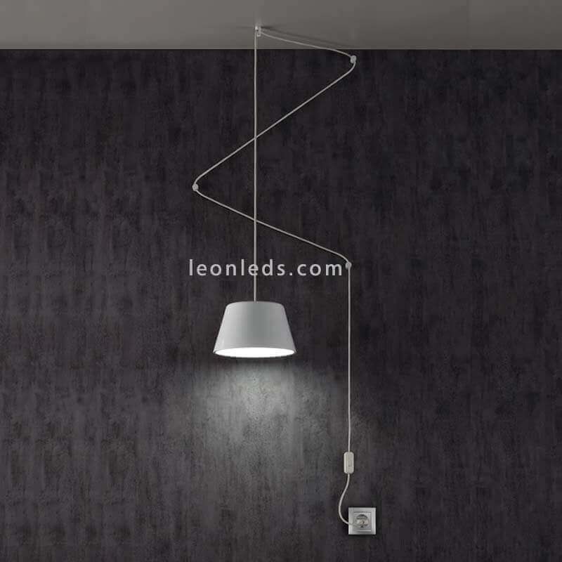 A altura total desta lâmpada é de 3 metros, 30cm do plug to the switch e 270Cm do interruptor para a extremidade da lâmpada, a tela tem uma altura de 14Cm e um diâmetro de 22Cm. Esta lâmpada é muito simples de instalar e recomendamos instalar 1 poderoso lâmpada LED GU10 em tom de luz quente ou natural. Se você está procurando uma lâmpada de teto com plug and switch, esta lâmpada da coleção Sento é a melhor opção.
