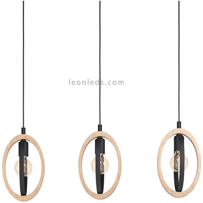 Lâmpada pingente de teto com 3 telas de madeira niveladas e aço marrom claro e preto com forma oval da coleção Basildon Iluminação do Eglo. É uma lâmpada de estilo vintage e retro perfeito para qualquer estadia que requer iluminação e toques vintage através de sua decoração e estilo retro. Necessidades de instalação de 3 lâmpadas com caixa E27 (não incluído). Recomendamos o uso de uma lâmpada de filamento LED tipo Globo para melhorar seu estilo vintage e retro como o mesmo será visível após as duas telas de madeira e aço na forma de um oval. PReferivelmente um tom quente como o 3.000k que irá melhorar que procurou vintage ou efeito industrial. A potência recomendada é de 10 a 17W dependendo das dimensões da estadia que precisamos para iluminar.