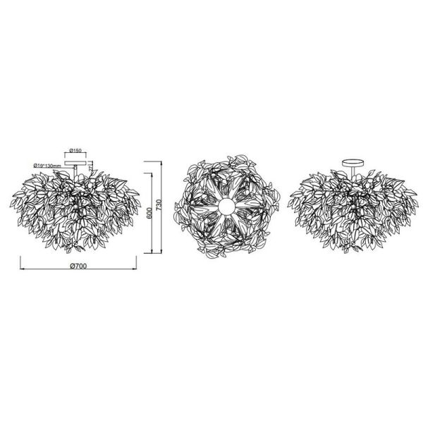 O Plafon LEAVY com diâmetro de 70 cm é inspirado na natureza para oferecer um design que imita as folhas de uma planta, proporcionando um toque decorativo e original a qualquer ambiente. Este plafon torna-se uma peça marcante que traz estilo e frescor aos seus espaços.