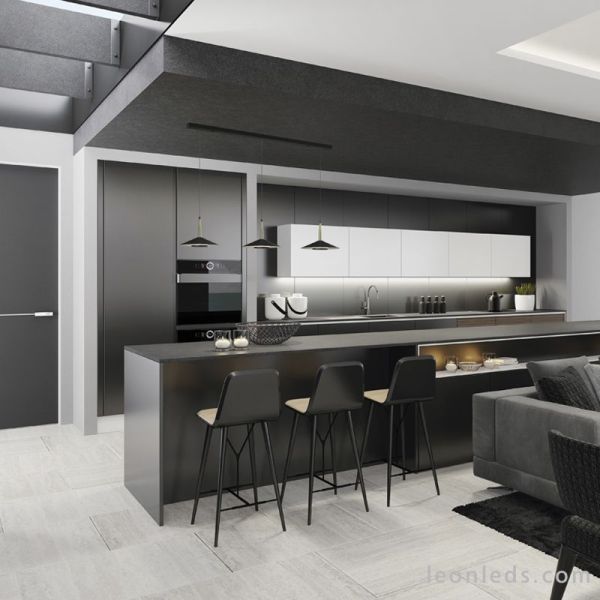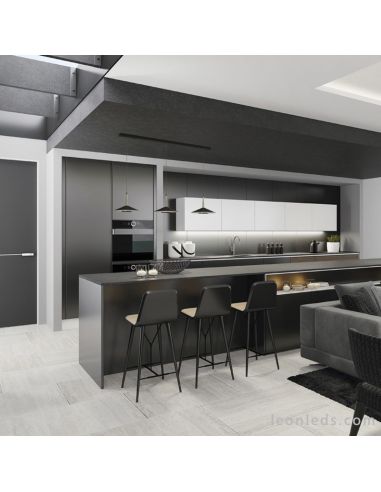A coleção Orion. é composto por isto Lâmpada de teto LED Orion. e várias mais lâmpadas que você pode encontrar em nosso site, tudo com o mesmo design e cor. O desenho do Lâmpada de teto LED Orion. É único, as telas com sua forma côncava não permitem ver a luz, alcançando assim um mínimo deslumbrante. Seu design combina simplicidade com linhas retas limpas, uma lâmpada muito minimalista que ampliará o lugar onde o instalamos, o resultado pode ser visto em todas as fotos do ambiente. O design desta lâmpada é o ideal para iluminar mesas vivas ou placas de cozinha: