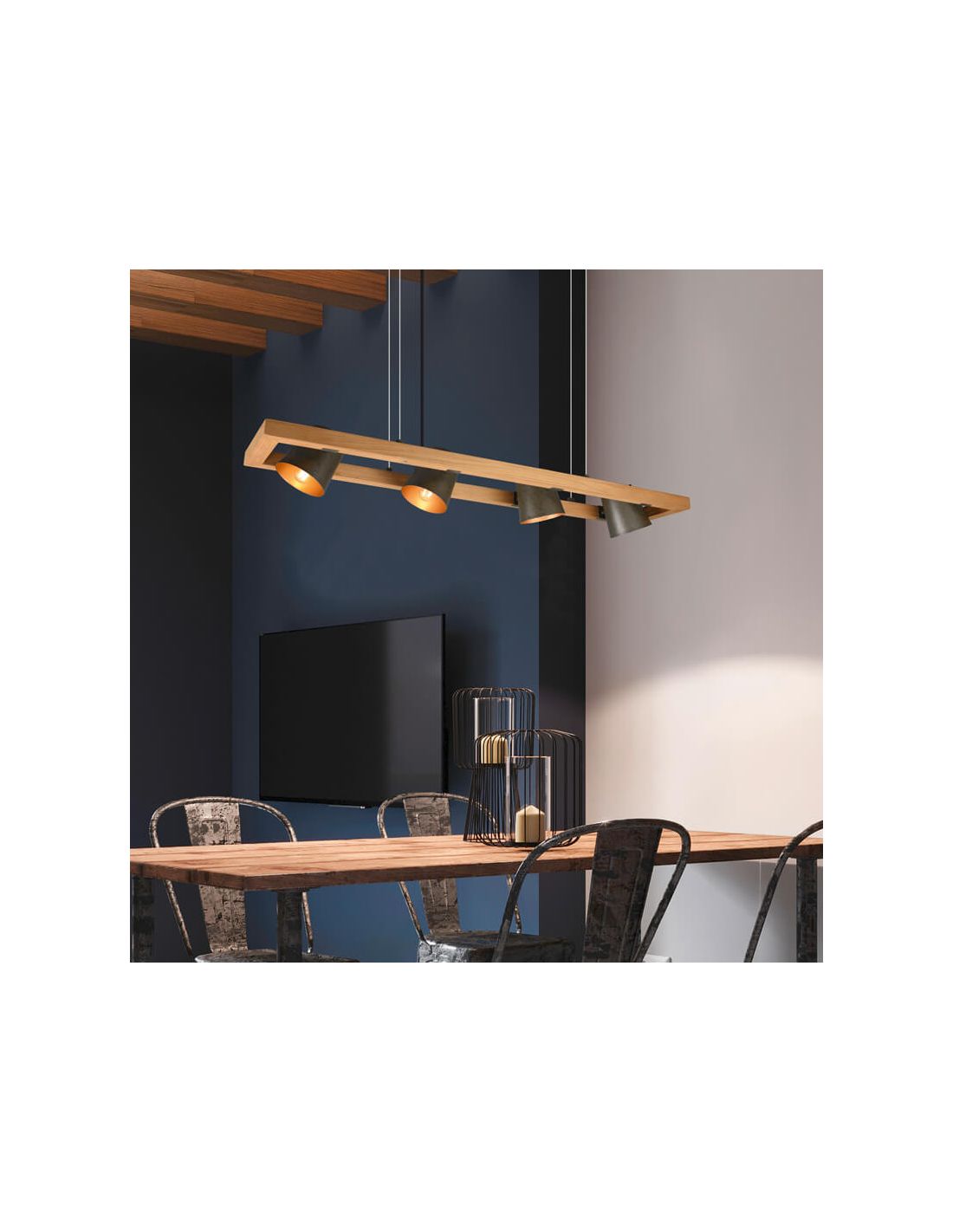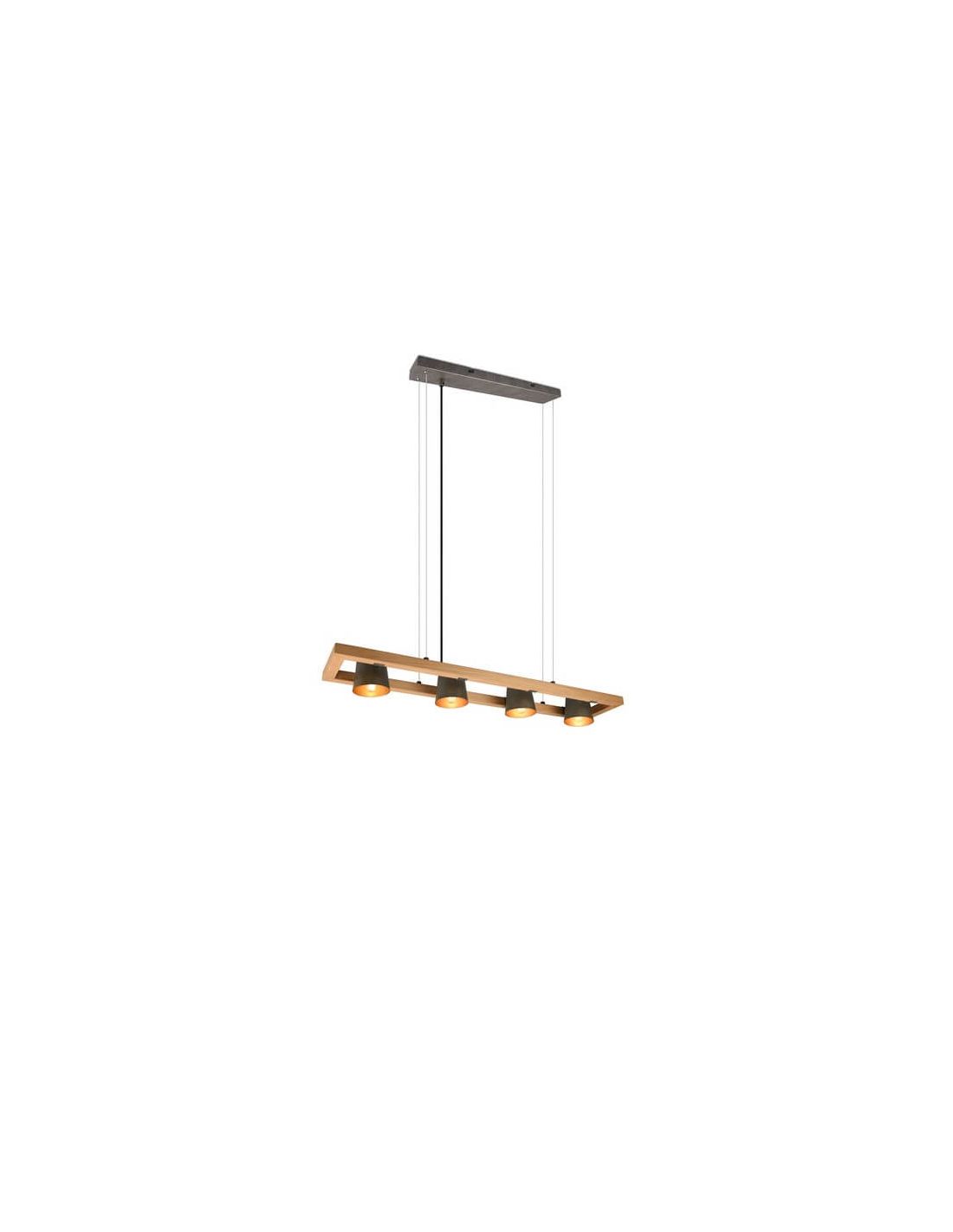 Plafon LED BELL 4 luzes focos orientáveis em madeira e metal IP20