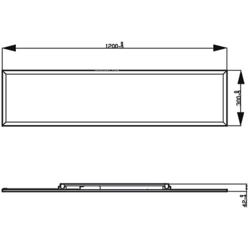 Este Plafon tem um comprimento de 120Cm, uma altura de apenas 4.2Cm e uma largura de 30Cm, o difusor é feito de policarbonato de alta resistência de opal branco e uma estrutura metálica também de cor branca.