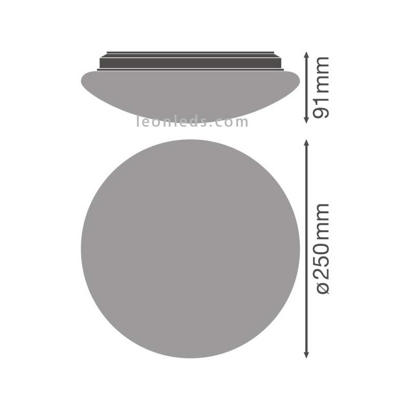 Esta placa LED tem um diâmetro de 25Cm e uma altura de 9,1Cm com um peso reduzido de 316grams. Sua vida útil é mais de 30.000h de uso.