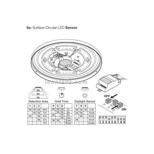 Plafón - Lâmpada LED com sensor de presença integrado com uma potência de 13W disponível em 2 tons de luz, luz de Calid 3000K com uma intensidade de 920Lm e luz natural 4000K com uma intensidade de luz de 960Lm e um ângulo de feixe de 120o.