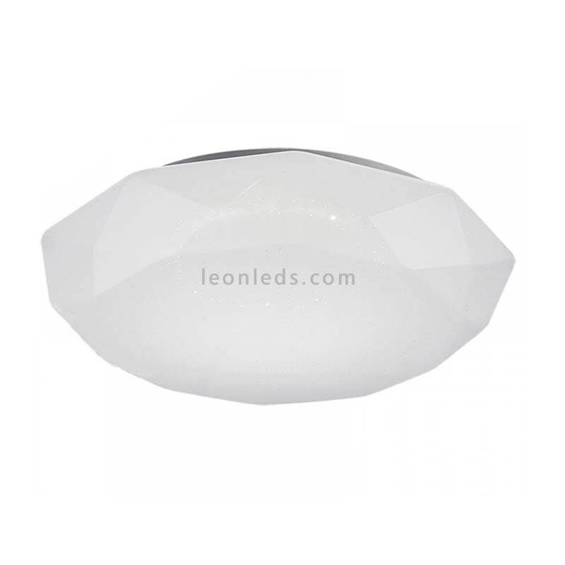 O novo LED LED LED Diamante inteligente que pode regular a intensidade e tonalidade da luz (de 3000K a 5000K) por controle remoto (incluído), por meio do App Mantra Iluminação e controle de voz como Alexa, Google Home. A forma deste LED Plafon é redonda e simula um diamante, mais o difusor oferece um efeito visual semelhante às estrelas.