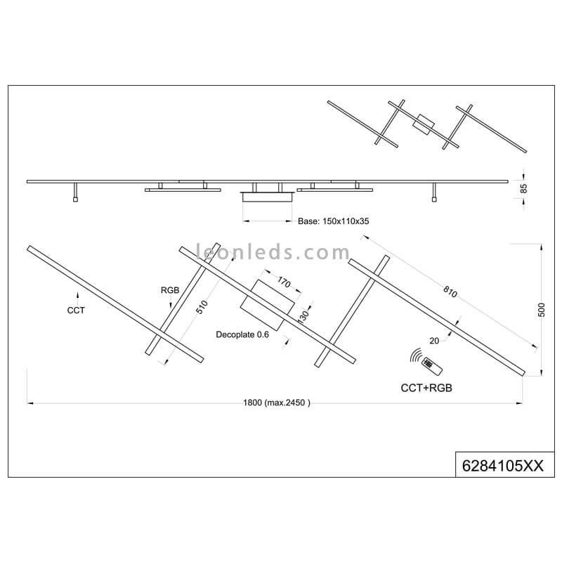 Para o seu funcionamento inclui a tecnologia LED RGBW integrada com uma potência de 22W e 2600lm juntamente com um comando à distância que lhe permitirá ajustar progressivamente a cor da luz e diminuir a intensidade da luz. Possui vários pontos de luz que podem ser ligados e desligados de forma independente . Tem garantia de 5 anos .