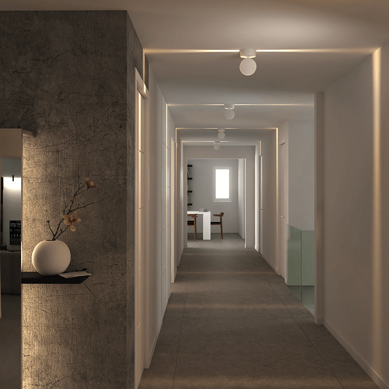 Com esta simples plafon de tecto pode criar espaços especiais e modernos em corredores e corredores. Pode-se brincar com a combinação de vários apliques de teto deste modelo, como se pode ver nas fotos do produto.