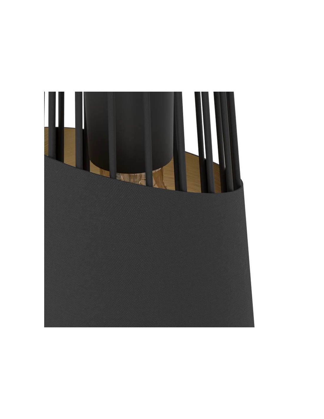 Candeeiro de tecto preto moderno Austell com 1 tonalidade de tira de aço preto da colecção Austell da Eglo Iluminación . É uma lâmpada elegante e moderna, perfeita para qualquer divisão que necessite de iluminação e decoração ao mesmo tempo, com toques pretos e dourados. O seu abajur é dominado pelo aço preto em forma de tiras, e por uma sombra preta no exterior e dourada no interior. Necessita de 1 lâmpada com casquilho E27 (não incluído). Recomendamos o uso de lâmpadas globo de filamento de LED para melhorar o seu estilo retro, uma vez que serão ligeiramente visíveis atrás da sombra semi-transparente.De preferência, escolha um tom quente, como 3.000k, que irá realçar o efeito vintage ou retro procurado, sendo reflectido no interior da tonalidade dourada. A potência recomendada é de 10 a 17W, dependendo do tamanho da sala que precisamos iluminar. O seu abajur tem um diâmetro de 16,5Cm