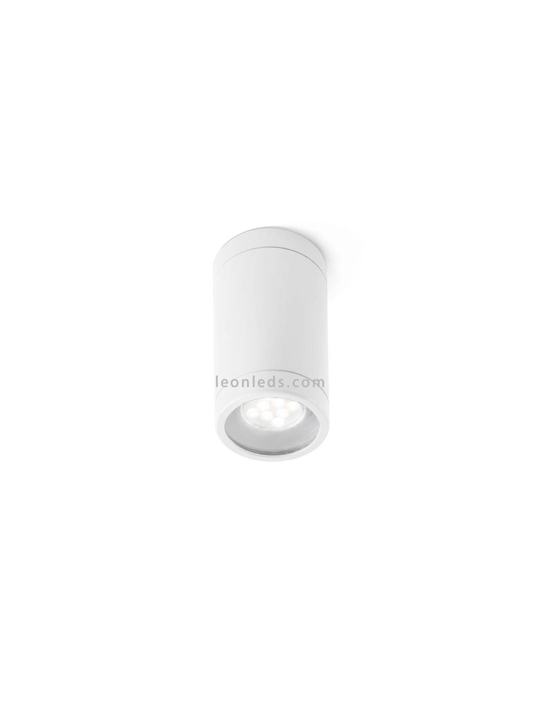 Plafon exterior branco da série Olot da Faro Barcelona, requer 1 lâmpada com casquilho GU10 (não incluído), é fabricado em alumínio branco e tem um grau de proteção contra água e pó de IP44, ideal para instalação no exterior telhados.