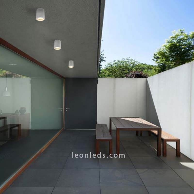 Permite a instalação em qualquer tipo de teto exterior. Ele serve para iluminar áreas específicas ou dar uma luz indireta de decoração.