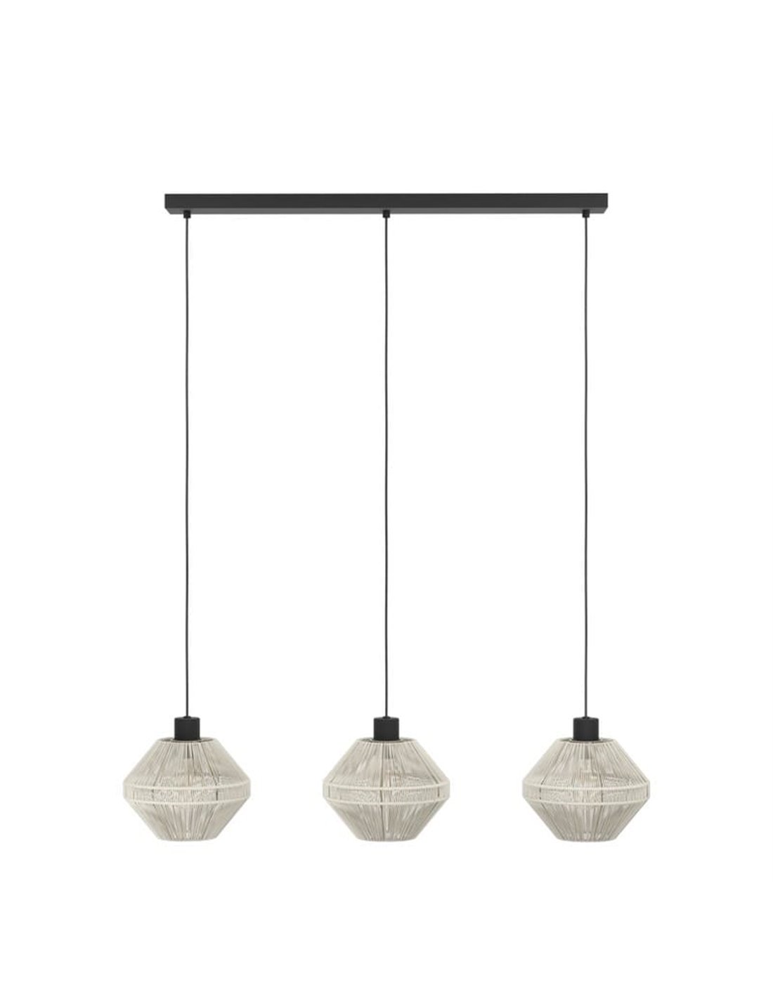 Candeeiro de teto suspenso com 3 luzes de aço PERSLEY e abajur de papel preto