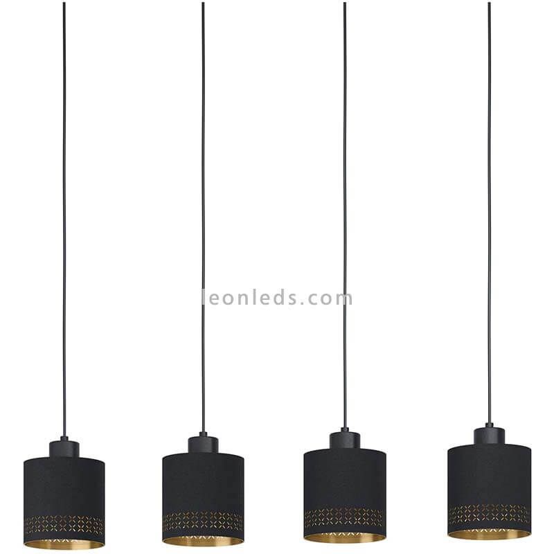 Em LeónLeds apresentamos a coleção perfeita para renovar a iluminação decorativa de sua casa ou loja e dar-lhe um toque moderno que encantará seus convidados e clientes. Você pode incluir esta lâmpada de teto de 4 telas Esteperra e combiná-lo com decoração de quarto e espaços comerciais que incorporam cores como preto e ouro e materiais como aço e tecido. Podemos instalá-lo em qualquer sala que precise de muita iluminação, como bares, balcões de lojas, mesas de jantar ou corredores de casas. Além disso, suas telas de tecido permitem uma limpeza simples e manutenção.