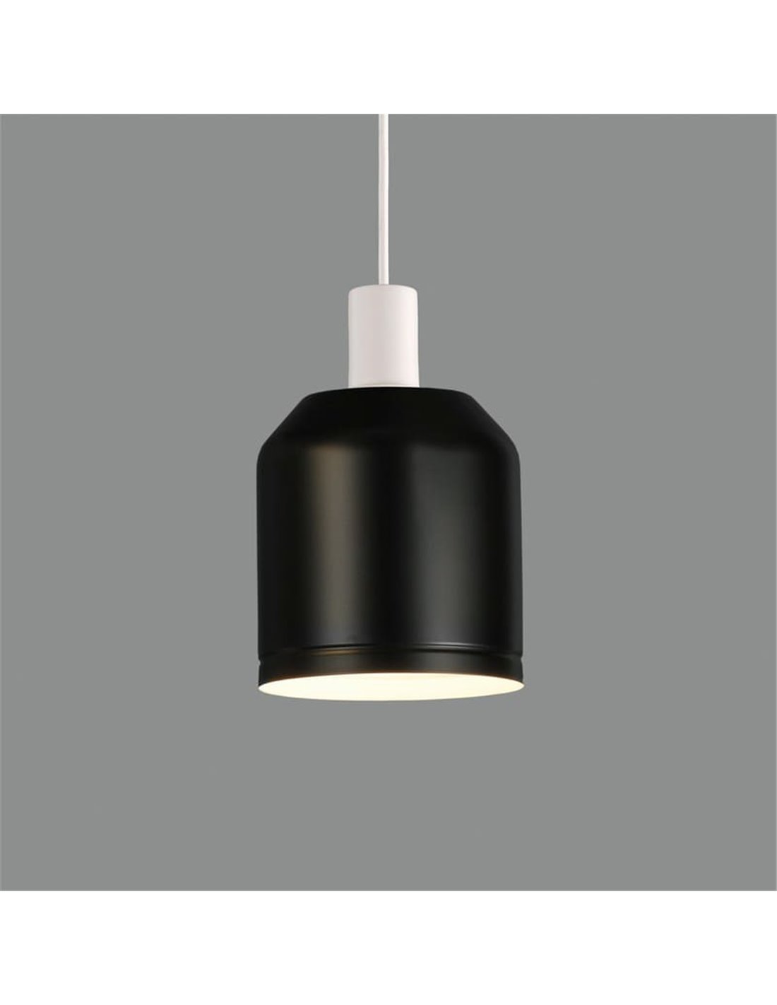 O candeeiro suspenso de teto TURKANA em preto com kit branco texturizado utiliza uma lâmpada LED E27 de 15W . Dimensões: ↕ 240Cm | Ø 16,5cm. Contraste único para qualquer espaço.