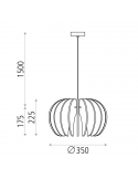 Esta lâmpada pendente Rosa del Desierto tem um comprimento de 1,675 metros entre o comprimento do seu cabo e a altura da lâmpada; e a própria lâmpada tem um diâmetro de 35 centímetros.