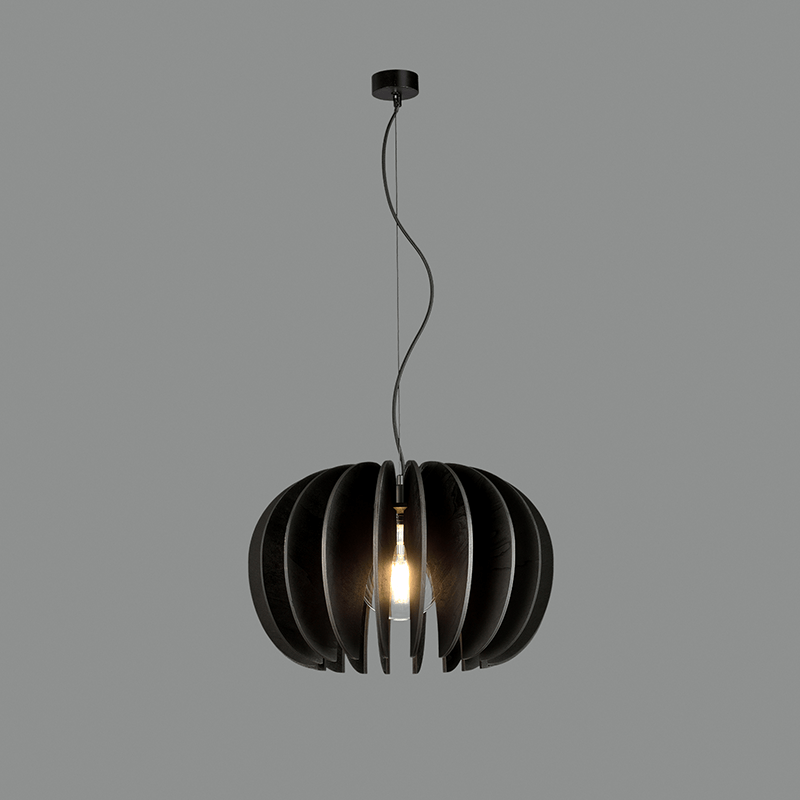 Graças à sua estrutura em forma de pétalas de madeira preta , a luz passa criando um belo jogo espiral de luz ao redor da lâmpada. Com isto e com o seu IP20, torna-se o elemento essencial de uma casa moderna e inovadora.