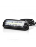 Lâmpada LED com forma retangular válida para 12V e 24V com potência de 2.000Lm, inclui 2,5 metros de cabo para instalação e inclui 2 suportes para instalá-lo com uma inclinação de 45o e outro suporte para instalação na superfície.