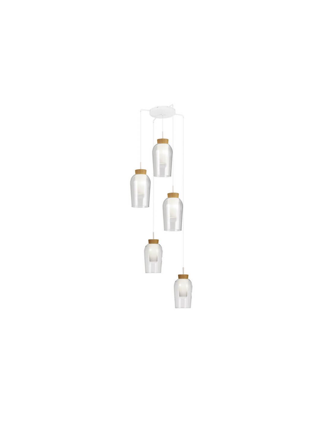 O candeeiro suspenso Nora 5L é ideal para instalar com abajures em forma de 'cluster', criando um efeito decorativo inigualável. Cada uma das tonalidades pode ser regulada de forma independente para obter resultados ainda mais personalizados . O candeeiro de teto interior Nora 5L pode ser selecionado em três combinações diferentes: branco-madeira , preto-mármore e dourado-mármore . Funciona com 5 lâmpadas LED E27 na potência máxima de 20W, que não acompanham a embalagem. O produto oferece garantia de 3 anos com sua compra e proteção IP20.