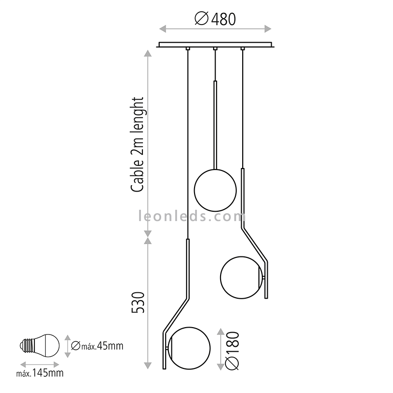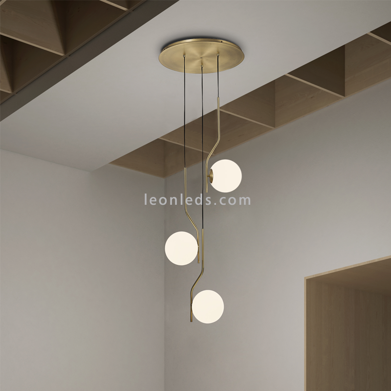 A lâmpada pendente 3L da Maui mistura a elegância oferecida pelo preto e o velho ouro mate com a intemporalidade oferecida pelos globos de cristal. A lâmpada pendente 3L irá vestir com distinção e classe as áreas de tectos largos e cantos procurando o destaque e criando uma atmosfera perfeita. Nesta proposta de lâmpada pendente circular, propomos um conjunto de 3 luzes que, juntamente com 3 lâmpadas do tipo E27 (não incluídas), oferecerão um resultado espectacular.