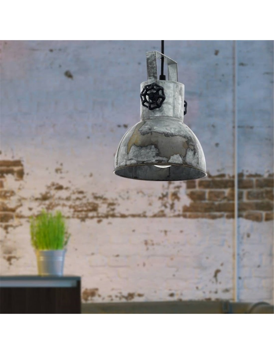 A luminária suspensa BARNSTAPLE da EGLO é a escolha perfeita para quem procura adicionar um toque de estilo industrial à sua casa. Fabricada com spot metálico suspenso com acabamento em zinco galvanizado usado , esta luminária destaca-se pelo seu aspecto rústico e robusto. Parafusos de travamento pretos nas laterais completam o design exclusivo desta luminária, proporcionando um toque vintage que se adapta a qualquer estilo de vida.