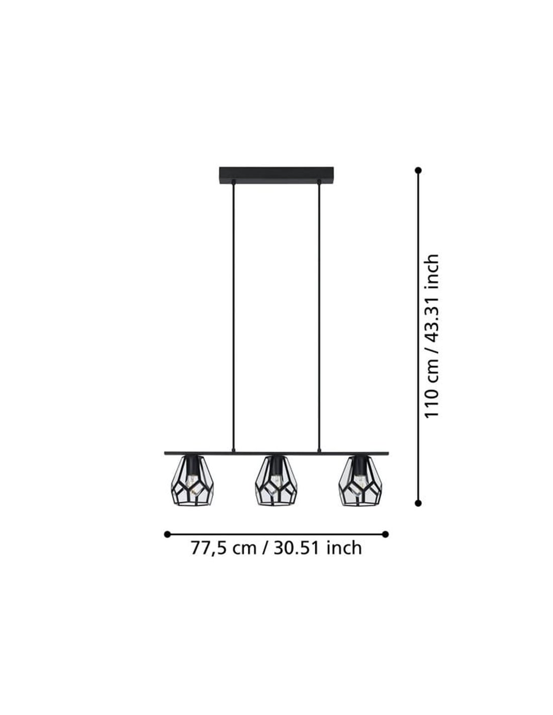 Candeeiro suspenso moderno de cristal preto CHARTERHOUSE, 3xE27