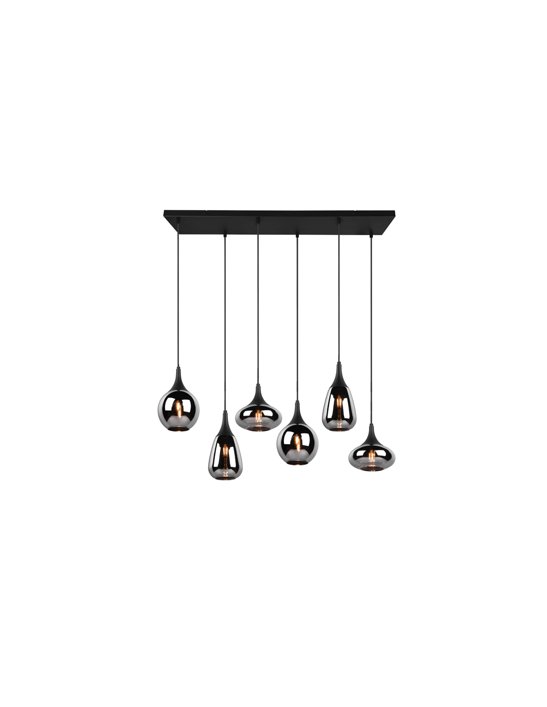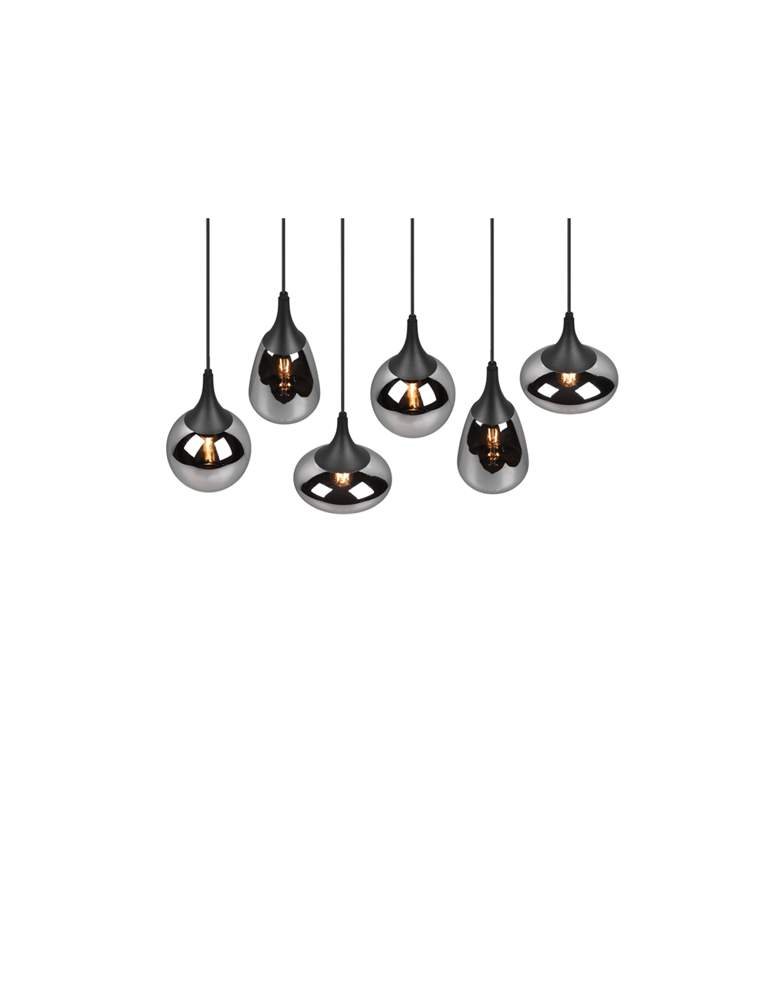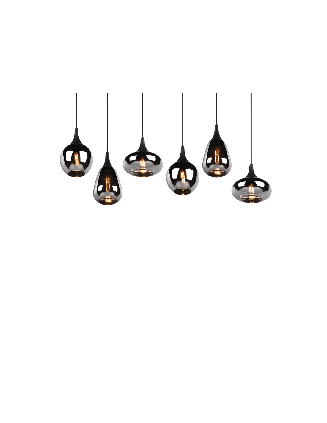 Candeeiro suspenso preto vidro fumado 8 luzes Lumina 40W