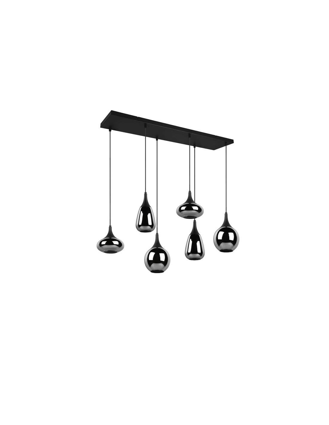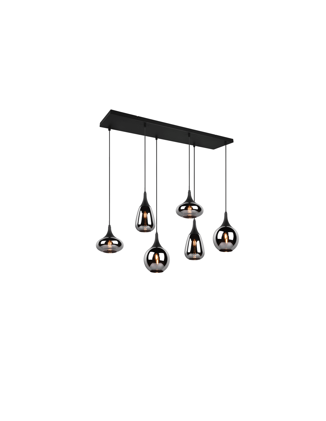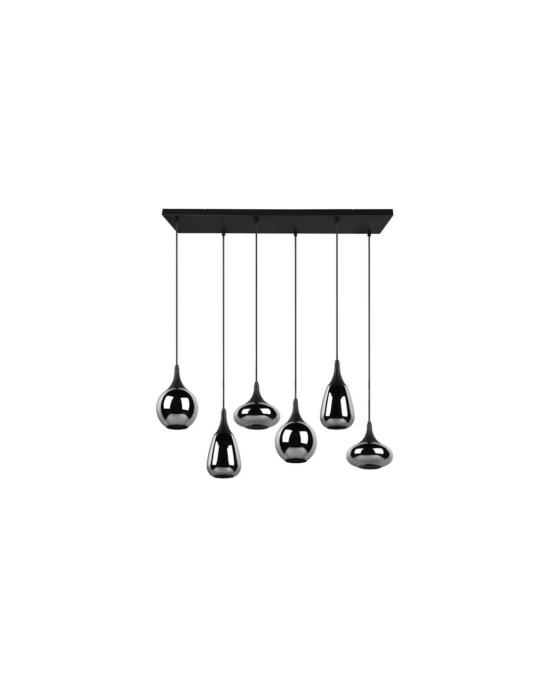 Candeeiro suspenso preto vidro fumado 8 luzes Lumina 40W