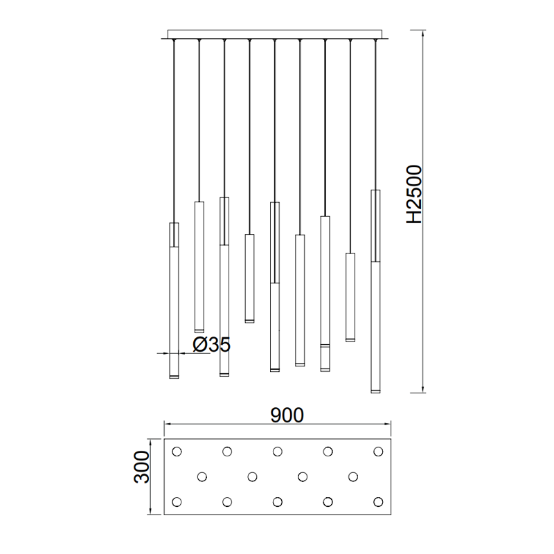 Combina 4 luminárias em branco, 4 em preto, 4 em ouro e 4 em estilo corten. O tamanho dos 14 fios para as luzes é de 2 metros o que permite que este pingente brinque muito bem com tectos altos. A luminária LED tem uma vida útil de aproximadamente 30.000 horas.