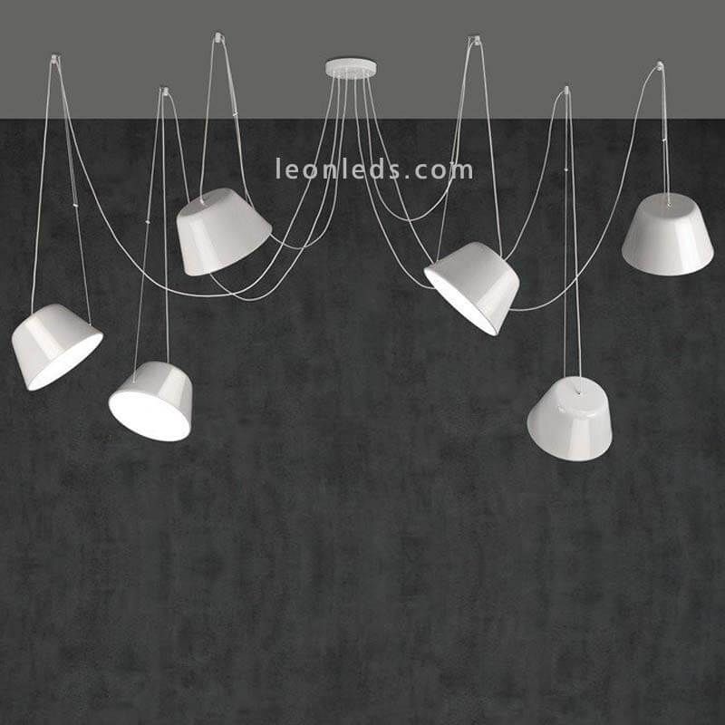 Lâmpada de pingente Sento coleção de cores brancas Sento. FM Iluminação, precisa de lâmpadas LED GU10 que podem ser instaladas ajustáveis ou não reguladas, a regulação pode ser feita por regular externo que permite regular a tecnologia LED, caso você queira regular a intensidade que você deve escolher lâmpadas LED GU10 ajustável. Esta lâmpada de telhado branco está disponível com 2, 3, 4, 5 e 6 telas, você pode selecionar antes de comprar.
