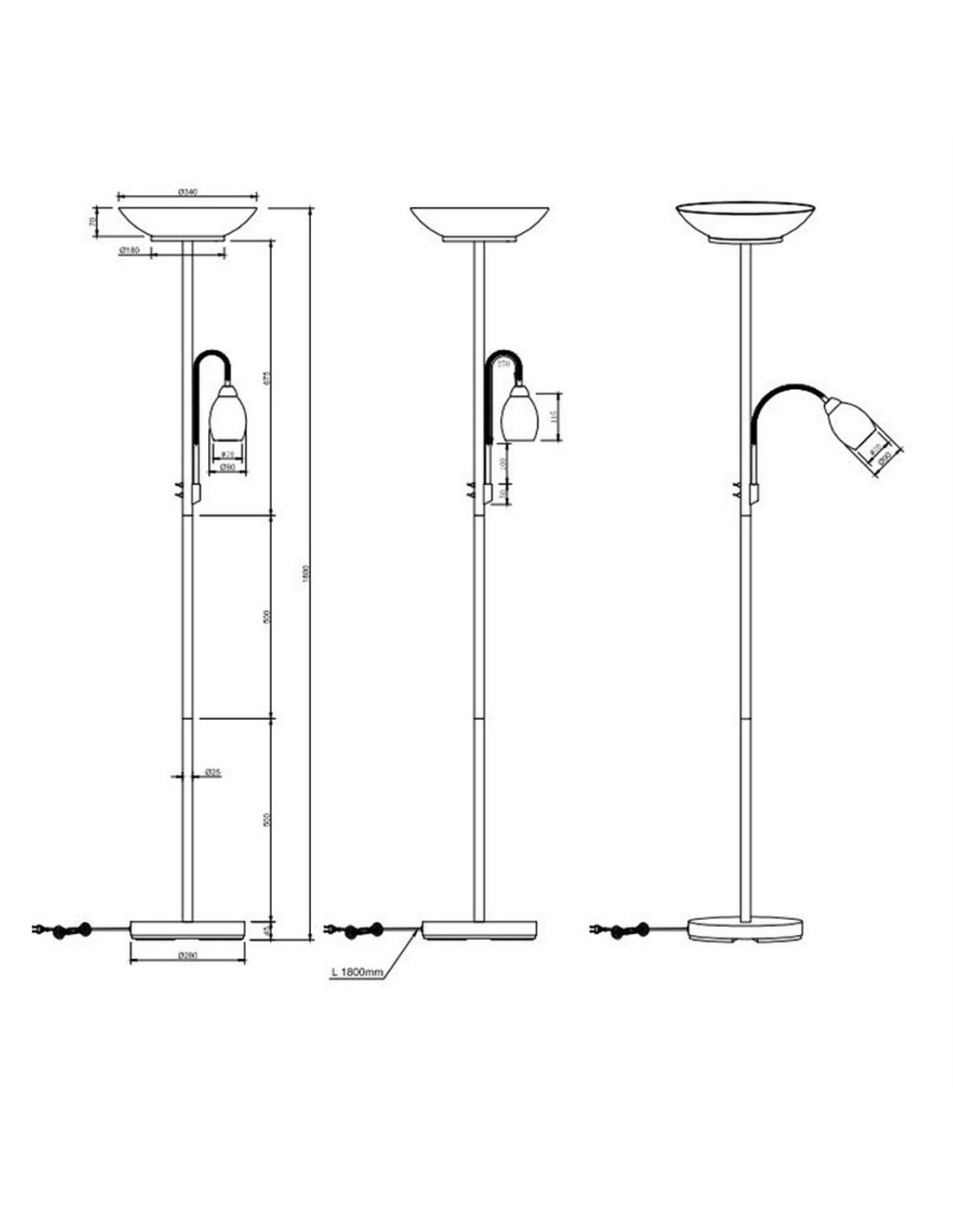A luminária de chão GERRY é uma solução de iluminação versátil que combina uma luz principal com uma luz de leitura auxiliar. Seu braço flexível permite direcionar a iluminação com precisão, ideal para leitura ou trabalho. Seu design moderno e funcional se adapta perfeitamente a salas de estar, quartos ou áreas de estudo.