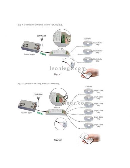 Controlador para fita LED monocromática da marca Ltech, modelo M2+M3-3A CV RGB Controlador, válido para 12v e 24V DC, 4 canais para 5A e máximo de 20A. A potência total é de 0 a 120W para 4 canais, permitindo instalar em 24V até 288W de potência, 6 fitas LED RGB de 72W cada fita LED, e em 12V até 144W, 3 fitas LED de 72W cada rolo, a o controle remoto alcança até 30 metros de distância. Válido para 5V até 24V DC.