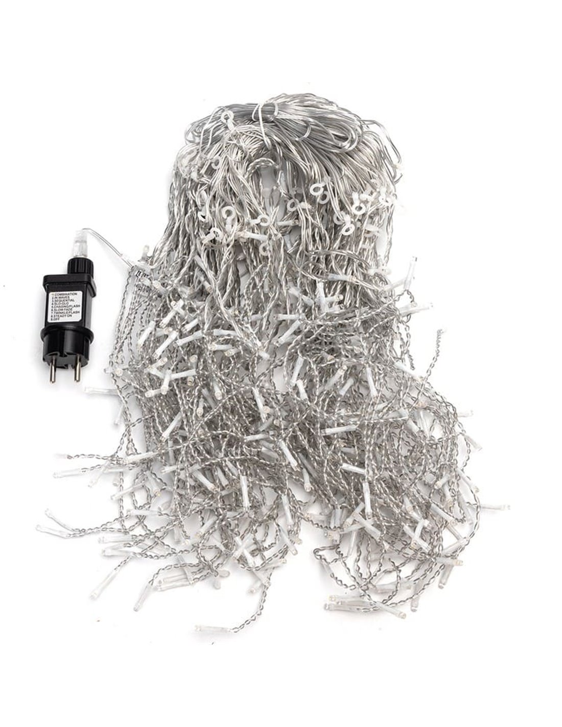 Funciona através de um transformador de baixa tensão ligado à rede elétrica (230V) e oferece 8 modos de iluminação , com consumo de energia muito baixo (≈6W) e proteção IP44 , adequado para uso interno e externo . Uma corrente de luzes LED em formato de gelo com 20m de comprimento, perfeita para criar decorações de Natal contínuas e seguras.