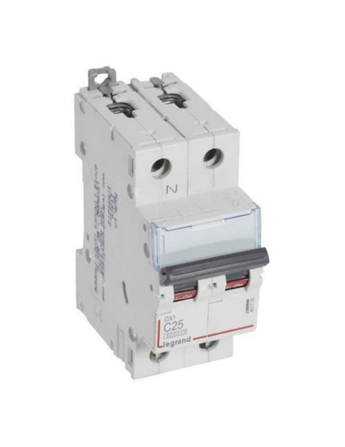 O interruptor magnetotérmico Legrand DX³ 407758E protege contra sobrecargas e curtos-circuitos . Versão P+N (fase protegida e neutro comutável ) de 25 A , curva C e capacidade de interrupção 6/10 kA para 230 V~ . Formato de 2 módulos com montagem em trilho DIN , porta-etiquetas integrado para identificar o circuito e conexão por barramento (pente) e cabo . Inclui IP20 , limitação de energia classe 3 e profundidade de embutimento de 44 mm . Compatível com auxiliares de controle/sinalização e blocos diferenciais DX³ , é ideal para linhas com picos de partida moderados , proporcionando segurança , confiabilidade e fácil manutenção .