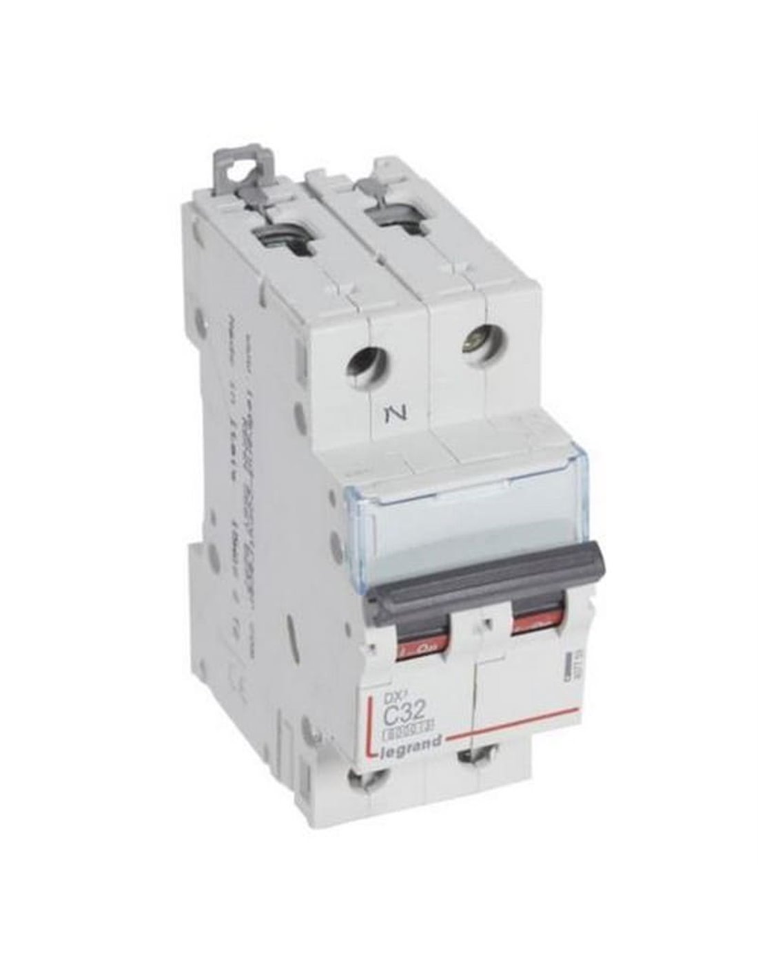 O interruptor magnetotérmico Legrand DX³ 407759E protege o circuito contra sobrecargas e curtos-circuitos . Configuração P+N (fase protegida e neutro comutável ) com 32 A , curva C e capacidade de interrupção de 6/10 kA para 230 V~ . Formato de 2 módulos com montagem em trilho DIN , porta-etiquetas integrado para identificar o circuito e conexão por meio de barramento (pente) e cabo em terminais de parafuso . Incorpora IP20 , limitação de energia classe 3 e profundidade de embutimento de 44 mm . Compatível com auxiliares de controle/sinalização DX³ e blocos diferenciais . Ideal para linhas com picos de partida moderados e demanda de até 32 A.