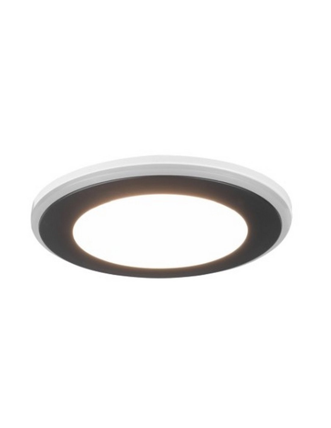 Luminária embutida LED AURA 5W com luz quente e moldura preta, Ø8,2cm