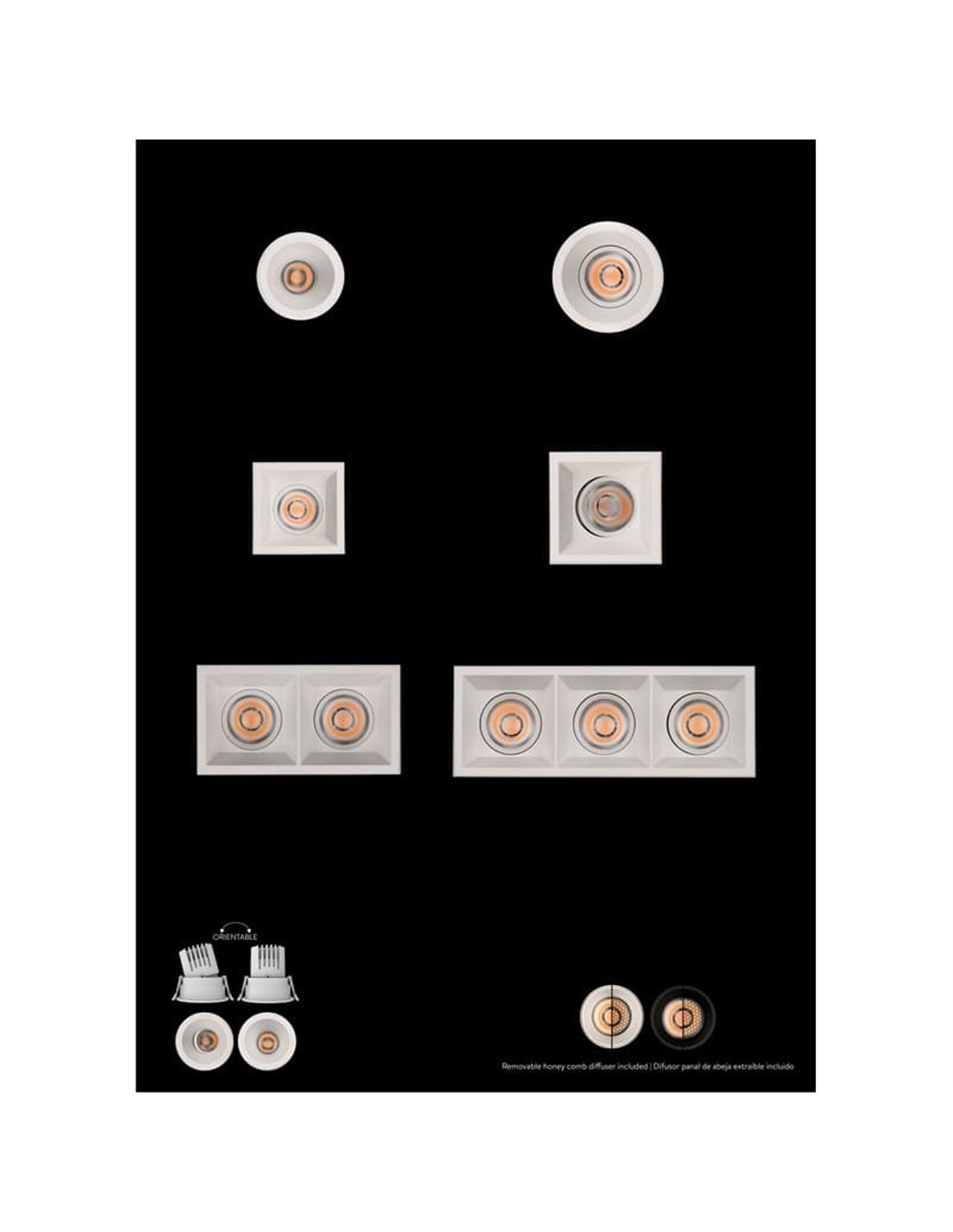 A luminária embutida LED quadrada COB MOVE x3 é ideal para uma variedade de aplicações internas e externas. Ideal para instalação em tetos de corredores, cozinhas, casas de banho e áreas exteriores cobertas, proporcionando uma luz clara e acolhedora. O seu design elegante e funcional torna-o numa excelente opção para melhorar a iluminação e o estilo de qualquer espaço.