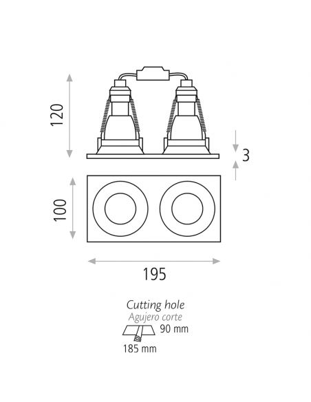 As Downlight LED Waka dois pontos de luz GU10 da ACB Iluminación tornar-se-ão o elemento de iluminação que procurava e nem sequer sabia que estava à procura. É um dispositivo que tem dois pontos de luz que são complementados com dois bulbos LED GU10 de 8W (não incluídas).