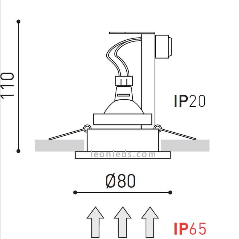 Candeeiro LED redondo estanque Banho 12V com vidro mate da marca ArkosLight, oferece um grau de proteção contra água e pó de IP65, não inclui lâmpada LED. Inclui o conector 12V MR16 GU5.3.