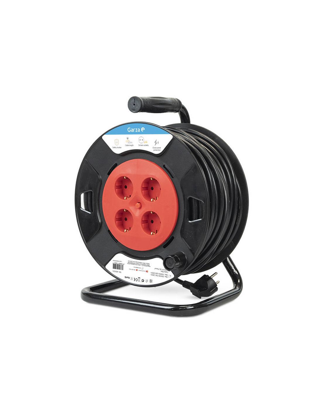 Enrolador de cabo Garza com 50 metros de cabo , equipado com quatro soquetes Schuko , alça de transporte e proteção térmica . Ideal para trabalhos internos e externos, suporta até 3000 W (10 A / 250 V) . Graças à sua construção robusta , o cabo pode ser desenrolado com conforto e segurança. Perfeito para uso profissional ou doméstico.