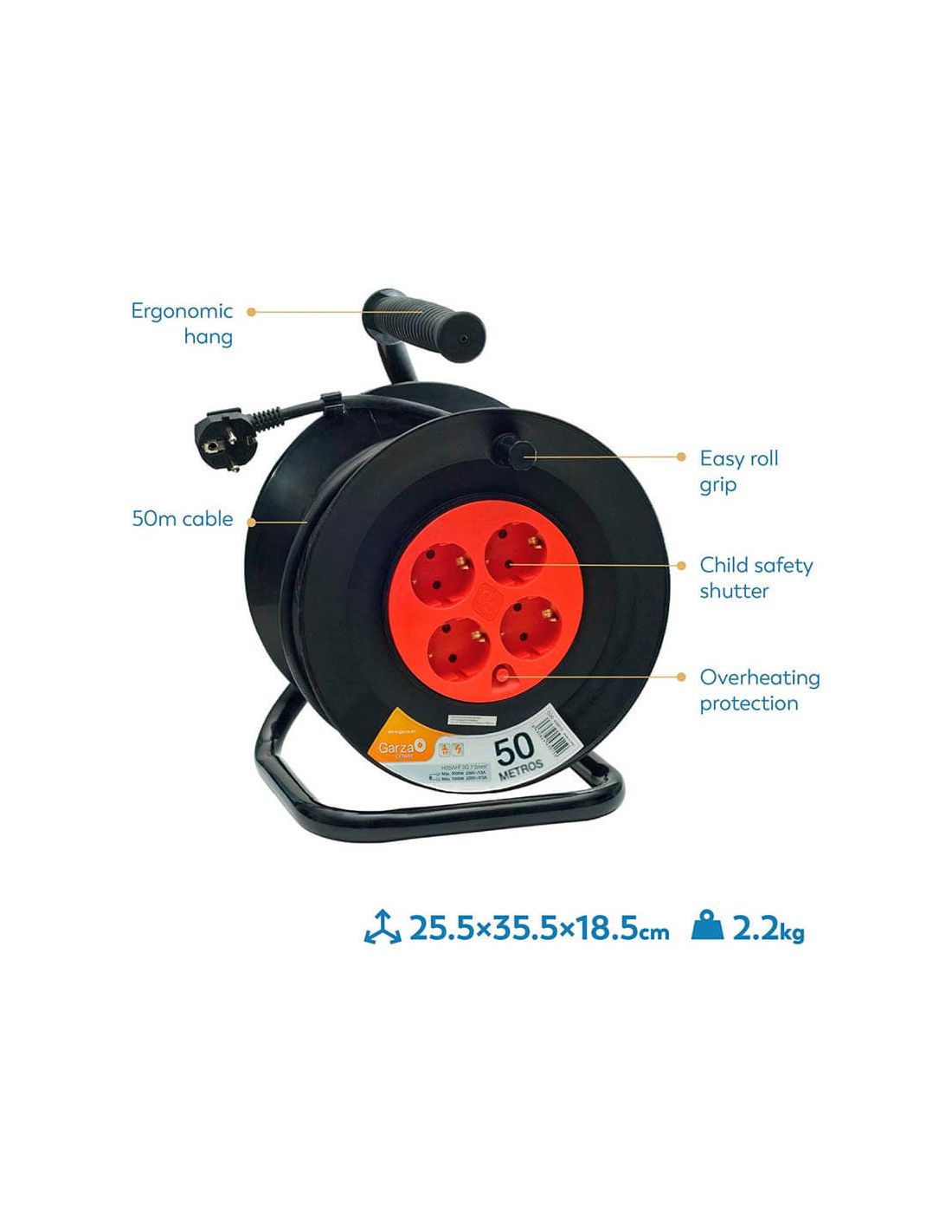 Este enrolador de cabos Garza foi projetado para oferecer o máximo de conforto e segurança em qualquer ambiente de trabalho. Possui 50 metros de cabo de alta qualidade , ideal para percorrer longas distâncias em ambientes internos ou externos.